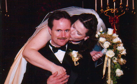 The bride kisses the groom