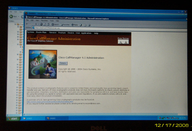 I finally got Cisco's CallManager program up and running on this date after months of on-again, off-again trying.