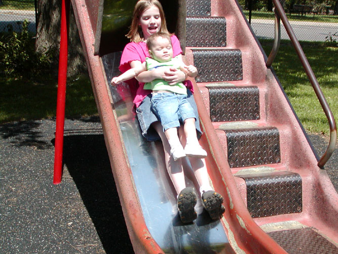 Abigail slides with Anna at Gage Park